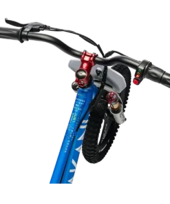 You can further upgrade the TK1652-RS with a 700W racing controller (Samford EMX) for higher torque and max. speed of 35km/h, a front brake kit (Samford EMX), a new raised and wider aluminium handlebars (Samford EMX) and a MX-style full throttle.